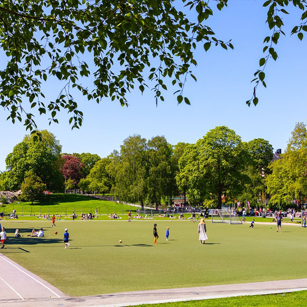 Vasaparken, en plats för barnen. Här finns lekpark, fotbollsplaner och mysiga caféer.